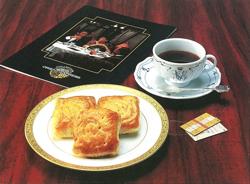 発売当初、欧羅巴衣(ユーロパイ)のイメージ写真はオリエント急行。シンプロン・オリエントエクスプレスで使われるコーヒーカップなどとともに製品の撮影を行いました。紙製の切符はオーストリア国有鉄道1975年当時のものです。