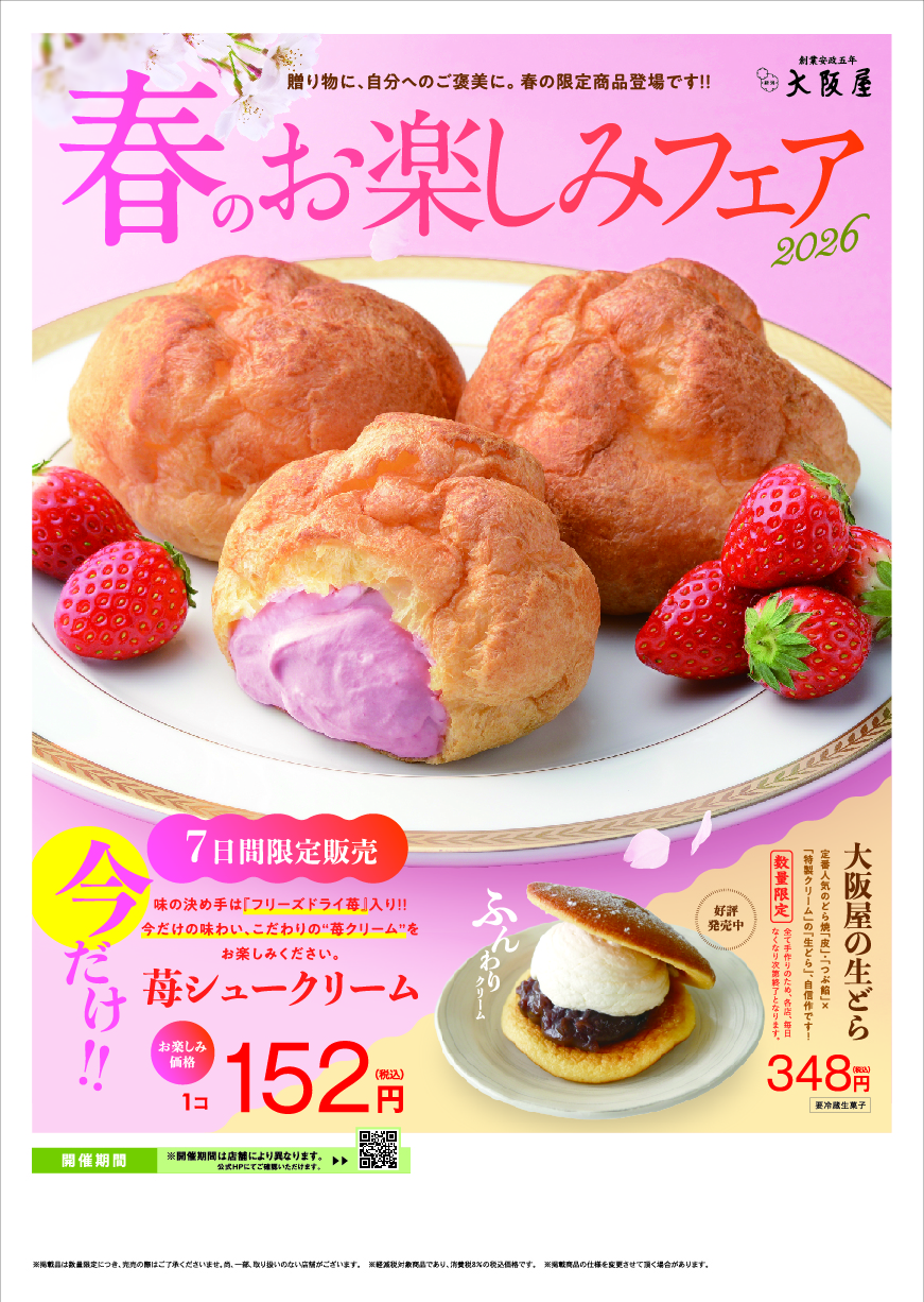 つぶつぶ苺の果肉が楽しめるさっぱりとした味わいの春限定『苺シュークリーム』がお楽しみ価格に!!