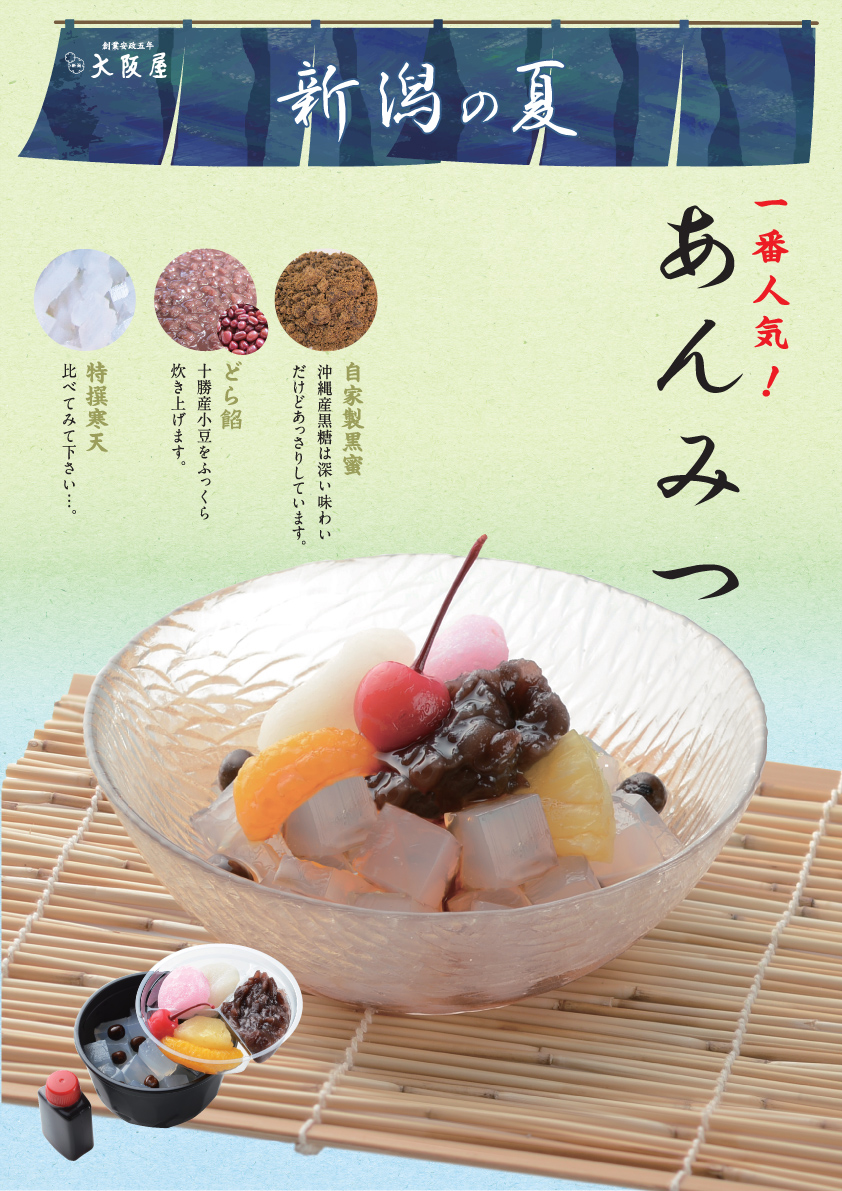 2026年04月09日(木) 【4月17日発売】あんみつ 素材にこだわった大阪屋の「あんみつ」を今年もぜひお楽しみください。 ●沖縄黒糖を使用した自家製黒蜜 ●天草を贅沢に使用した寒天 ●国産、北海道小豆を使用した粒あん 1個420円(税込)
